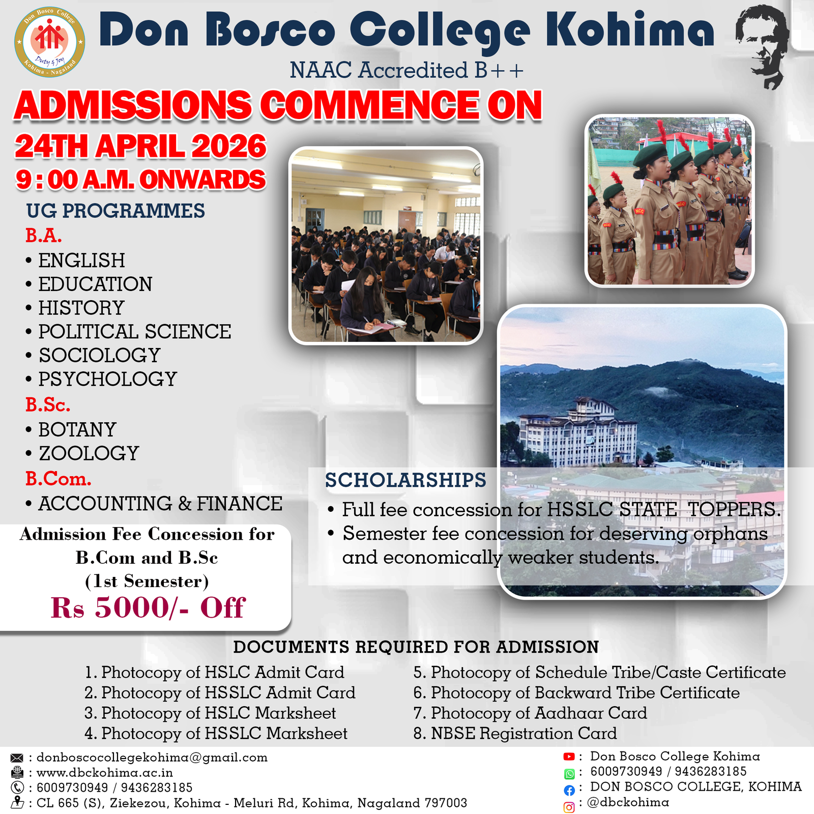 Don Bosco College Kohima, a UGC-recognized institution affiliated with Nagaland University, has grown since its 2015 inception into a full-fledged undergraduate college offering multiple arts, commerce, and science programs across two shifts, supported by extensive infrastructure on a 4.86-acre campus.